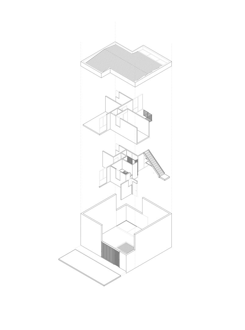 Casa modular aptada para terreno urbano, fabricada para ser construida en masa y en conjuntos habitacionales. La casa 8 al cuadrado busca entregar una opción de vivienda modular y de rápida construcción emplazada en la ciudad o espacios urbanos. Fue diseñada con la intensión de componer un conjunto habitacional de varias unidades. Existe un modelo base con cocina, estar, comedor, logia, 2 patios,2 dormitorios y 2 baños. También se cuenta con un programa ampliado con cocina, estar, comedor, lo-gia, 2 patios, 3 dormitorios y 3 baños. Este último tiene un módulo extra que contempla un nuevo dormitorio, flexibilizando el programa requerido.